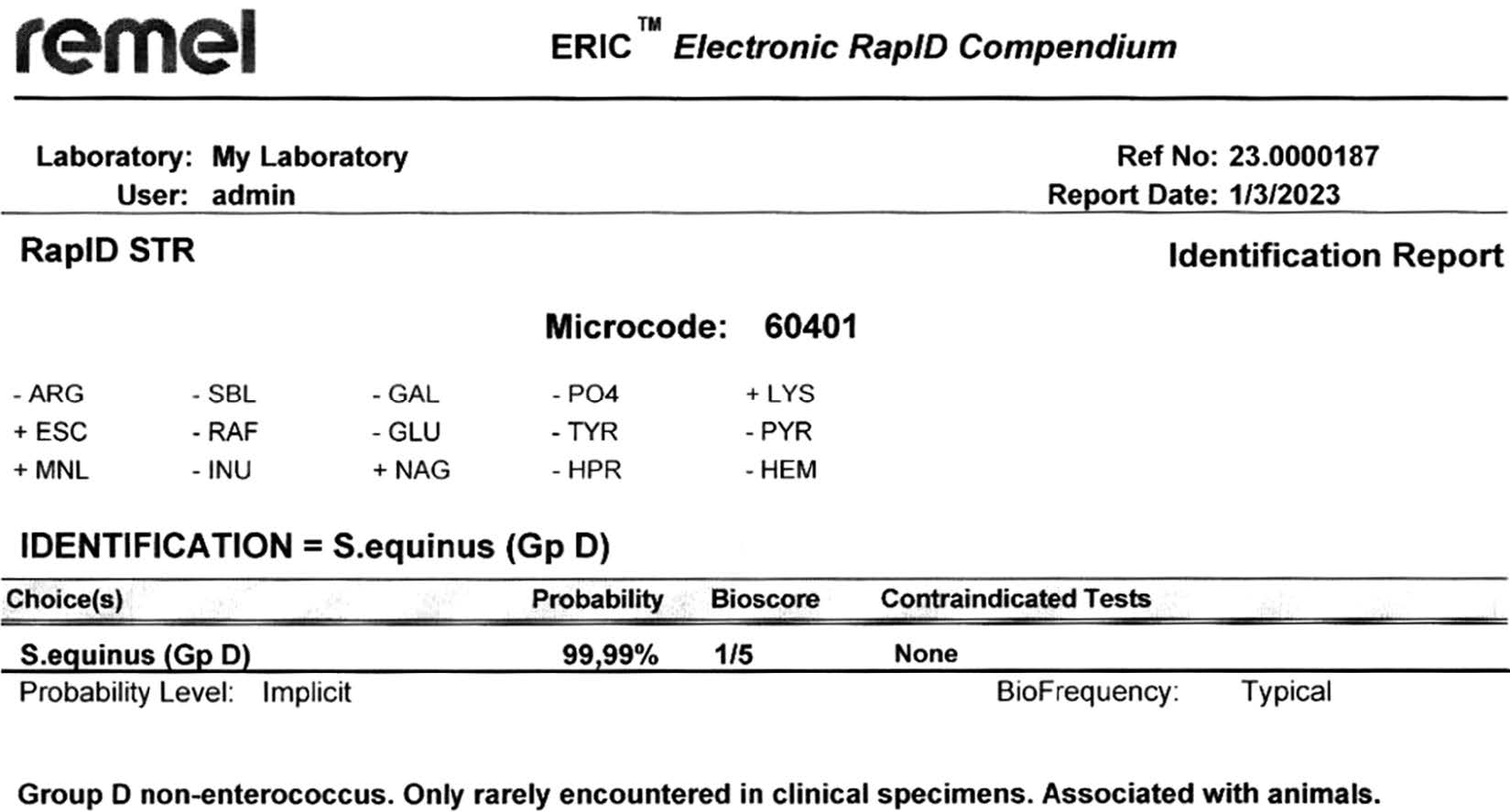 Figure. Identification of S. equinus by RapID™ REMEL ONE