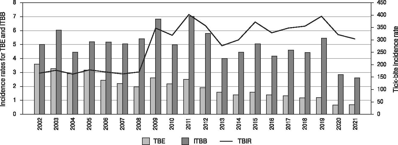 LTAIR of TBE in 2002–2021 | 5.5 | 5.5 | 1.3 | 6.3 | 1.3 | 1.9 | 1.6 | 2.1 | 1.2 | 2.3 | 2.0 |