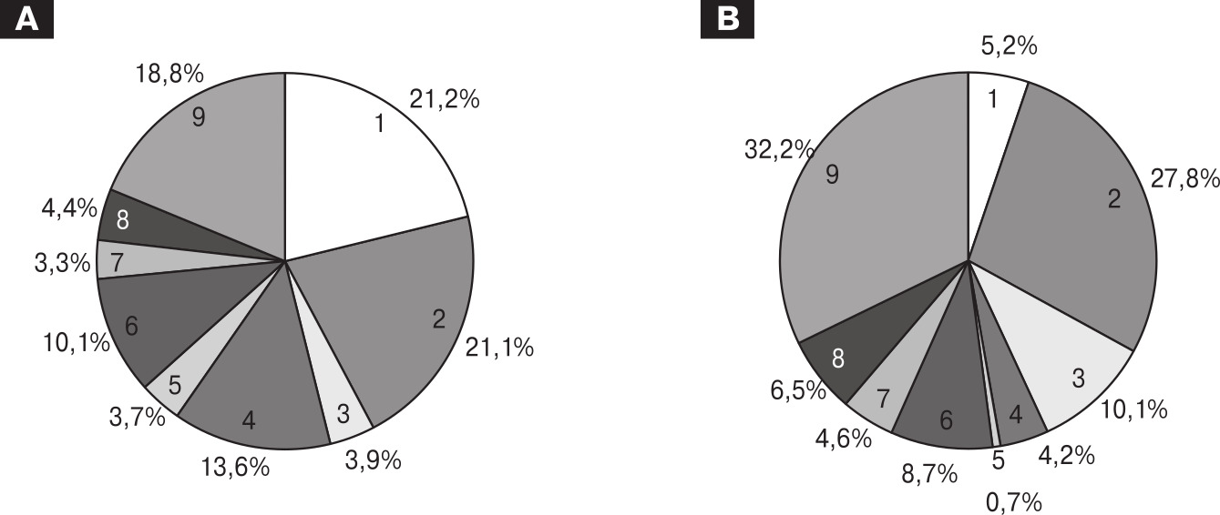 Note. 1 — Arkhangelsk Oblast, 2 — Vologda Oblast, 3 — Kaliningrad Oblast, 4 — the Republic of Karelia, 5 — the Republic of Komi, 6 — Leningrad Oblast, 7 — Novgorod Oblast, 8 — Pskov Oblast, 9 — St. Petersburg.
