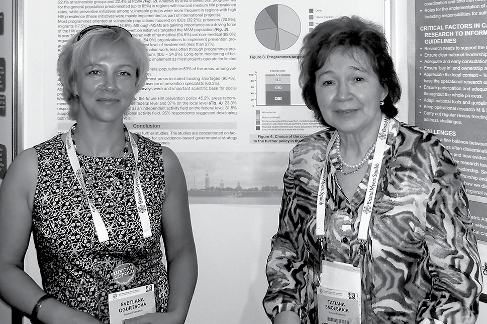 Начиная с 2003 г. реализовывались интегрированные исследования с включением в целевые группы женщин, вовлеченных в коммерческий секс в ряде мегаполисов страны (Санкт-Петербург, Москва, Екатеринбург, Томск и др.), и МСМ (Екатеринбург, Томск). Рабочие группы были созданы на базе Центров по профилактике и борьбе со СПИД с привлечением неправительственных организаций. В Санкт-Петербурге был обнаружен необычайно высокий уровень инфицирования ВИЧ в группе уличных работниц коммерческого секса (48,1%). Причиной этого явилось сочетание двух факторов риска — продажа секс-услуг и наркопотребление (92,0%). Пораженность ВИЧ в Москве и Екатеринбурге оказалась ниже и сопоставимой (14,1 и 14,8% соответственно) в связи с низкой частотой употребления наркотиков. MCM в Екатеринбурге и Томске практиковали в равной степени высокорискованное сексуальное поведение, однако ВИЧ инфекция была выявлена среди MCM только в Екатеринбурге (4,8%) ввиду более высокого присутствия ВИЧ-инфицированных в их социальном окружении.