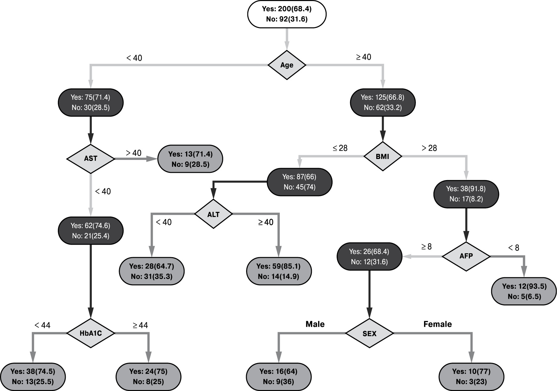 Figure 1. Decision tree with training dataset in CHB group (model 2)