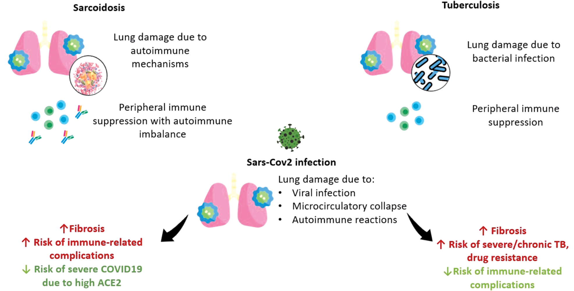 Figure. Scheme of immune response in COVID-19, sarcoidosis and tuberculosis