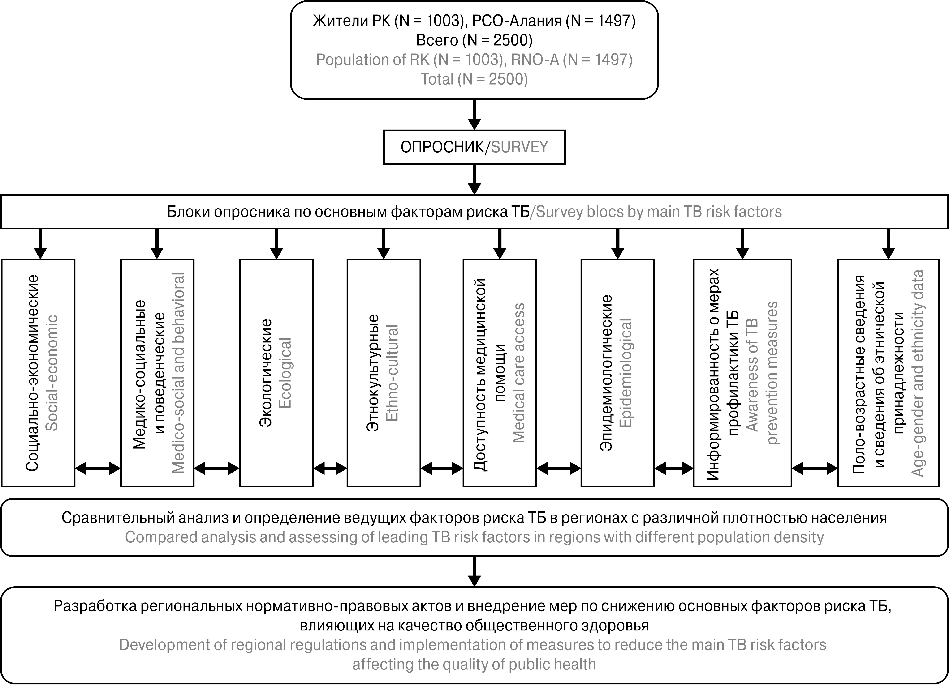 В регионах с высокой плотностью населения распространение ТБ преимущественно обусловлено эпидемиологическими факторами, которые достоверно чаще преобладали в РСО-Алания (до 70,0% респондентов указали на наличие контактов с больным ТБ родственником, соседом, коллегой, в РК — около 35,0%), где плотность населения в 29 раз превышает плотность населения РК. В РК, арктическом регионе с низкой плотностью населения, ведущими факторами заболевания ТБ были социально-экономические (респонденты чаще одинокие, чаще проживают в многоквартирных домах с малой площадью, чаще выполняют сезонные работы или работы по найму, чаще живут только на пенсию); поведенческие (анкетируемые чаще употребляют алкоголь, чаще курят, реже соблюдают здровьесберегающие традиции); медико-организационные (меньше здоровых по самооценке, больше имеющих хронические заболевания, чаще плохое здоровье связано с плохим питанием из-за материального недостатка; низкая доступность медицинской помощи чаще связано с отдаленностью МО, плохими дорогами и плохим транспортным сообщением, отсутствием врачей-специалистов).