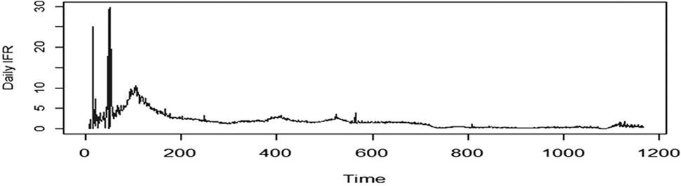Figure 1. Daily IFR of COVID-19 from January, 3rd 2020 to March 16th 2023
