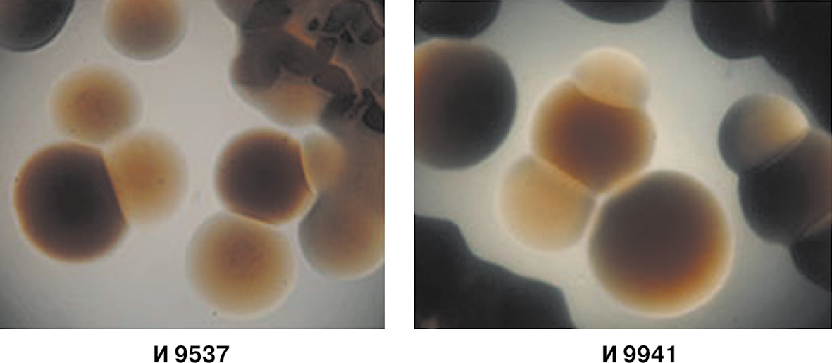 Сравнение сидерофорной активности культур (рис. 4, III обложка), полученных из колоний двух морфотипов, показало, что бактерии, образующие темные колонии, обладают меньшей сидерофорной активностью, чем бактерии из светлых колоний, независимо от их мукоидных свойств.