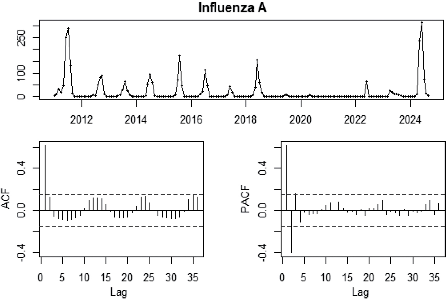 Time series analysis for modeling and predicting confirmed cases of influenza a in Algeria