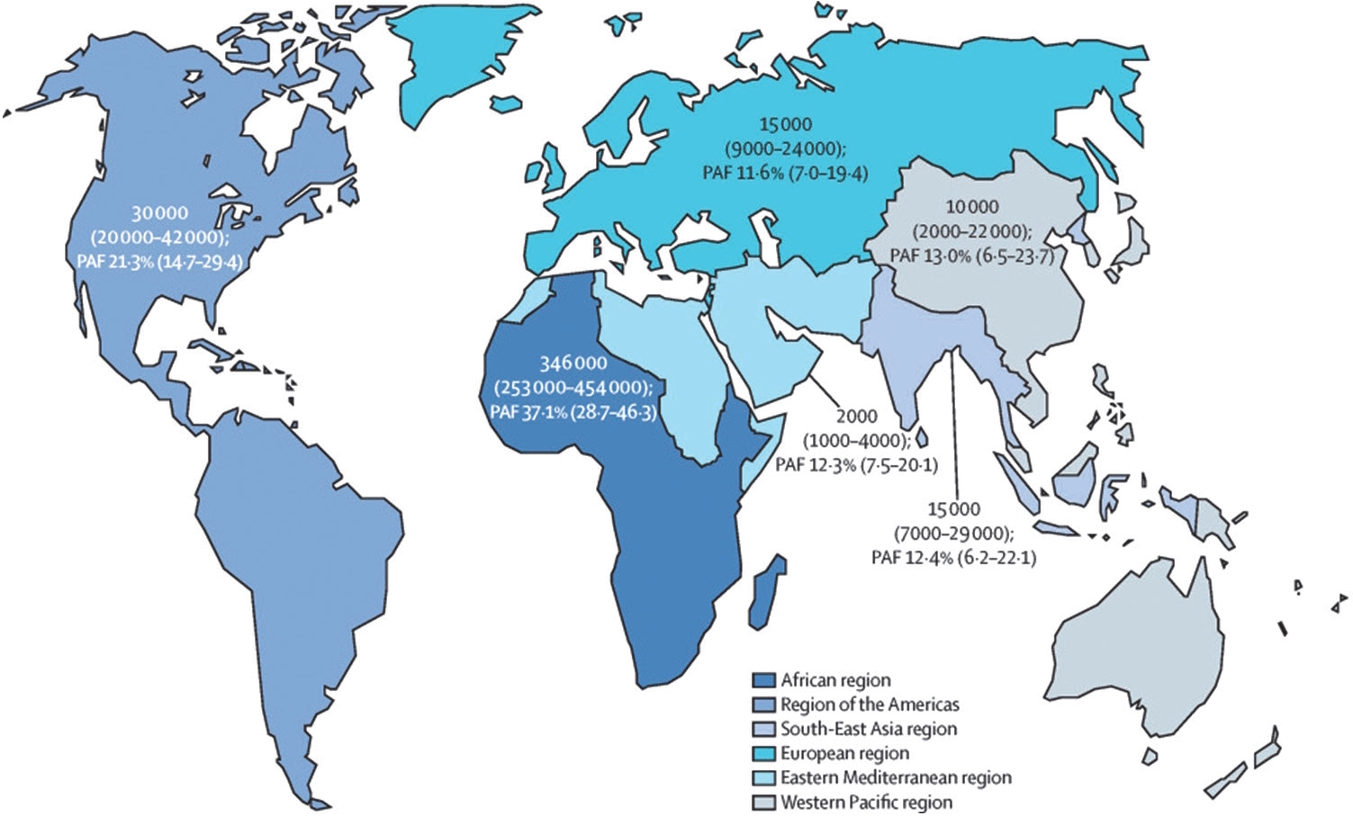 Figure 1. The global prevalence of HSV-2 across different geographic regions [24]