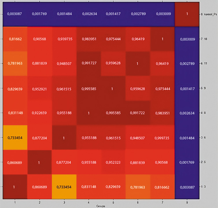 Figure 2. CCI matrix for Roseomonas aerofrigidens strains isolated from patient K. at 3, 5, 6, 8, 9, 11 and 18 months of therapy