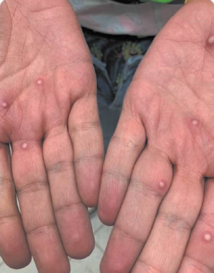 Рисунок 1. Пустулезная сыпь на коже ладоней