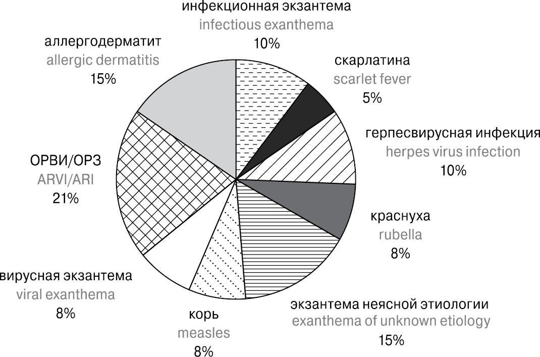 Рисунок. Первичные клинические диагнозы у пациентов с лабораторно установленной парвовирусной В19 инфекцией