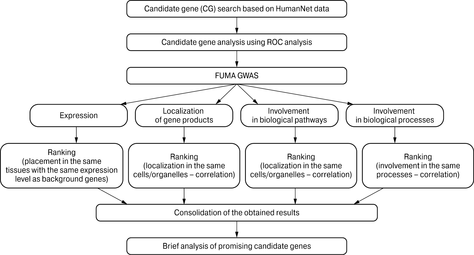 As part of the research methodology, an analysis was conducted to identify CGs potentially related to HIV pathogenesis. At the initial stage, the HumanNet resource was used for the preliminary search of CGs, followed by evaluation of the reliability of the identified relationships using AUROC analysis. The FUMA GWAS tool in GENE2FUNC mode was used to perform a comprehensive analysis of the identified CGs, which included an assessment of gene expression level and tissue specificity, product localization, and their involvement in various biological pathways and processes.