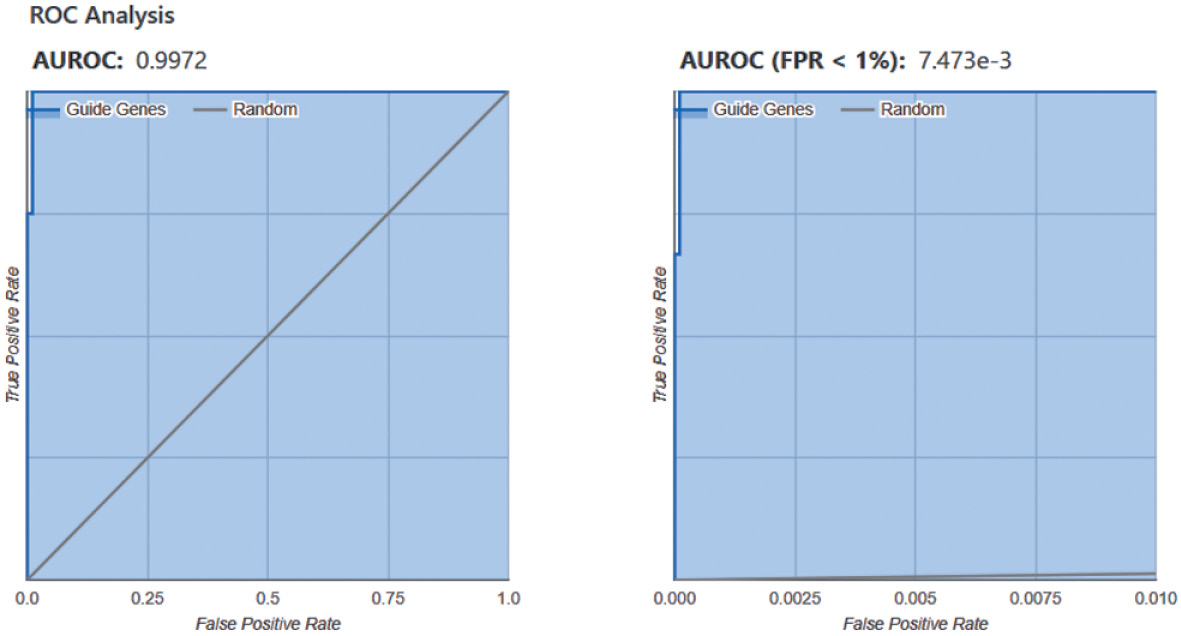 Figure 2. AUROC prediction of identified HumanNet candidate genes, calculated relative to background genes (CCR5, CXCR4, CD4, CCR2) with a false-positive rate cutoff of 1%