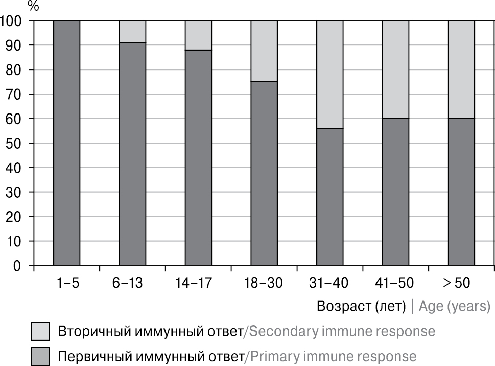Примечание. * p < 0,05 в сравнении с соответствующей группой с первичным типом иммунного ответа.