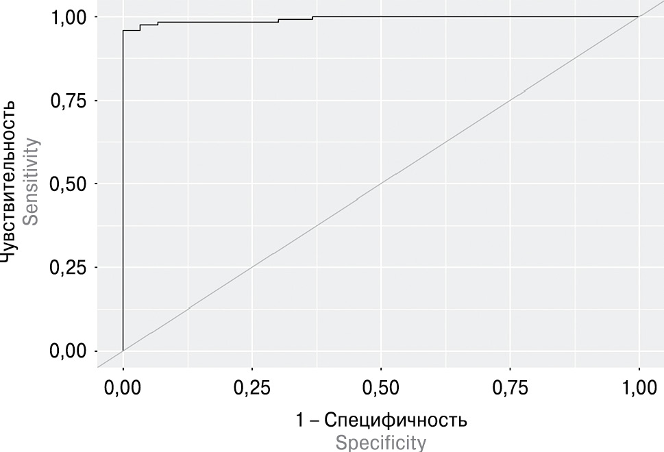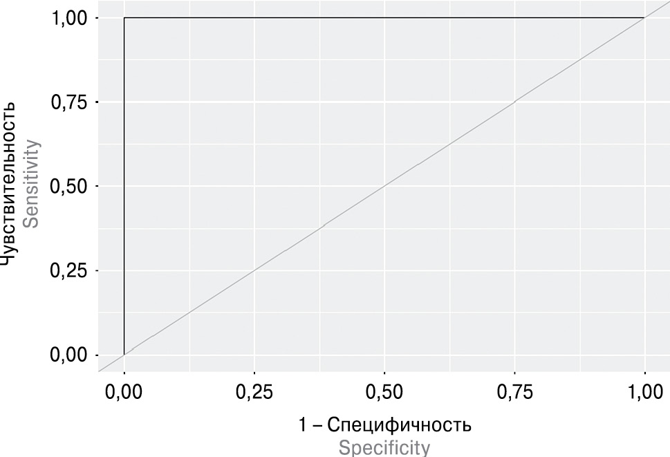 Для оценки диагностической эффективности предложенных маркеров был проведен ROC-анализ и определен показатель площади под ROC-кривыми — AUC.