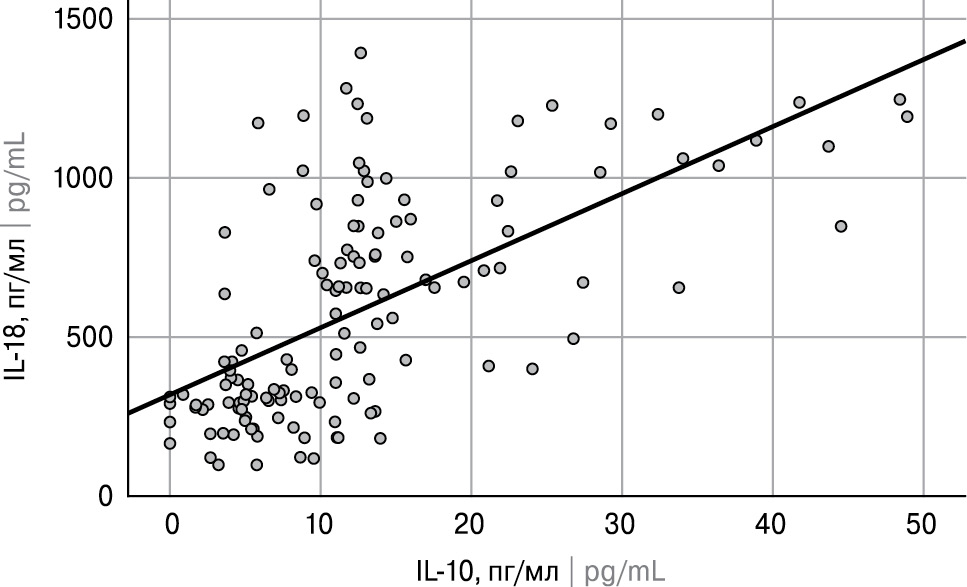 Рисунок 5. Диаграмма рассеяния IL-18–IL-10