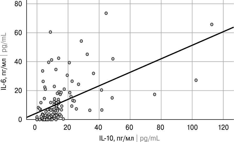 Рисунок 6. Диаграмма рассеяния IL-6–IL-10