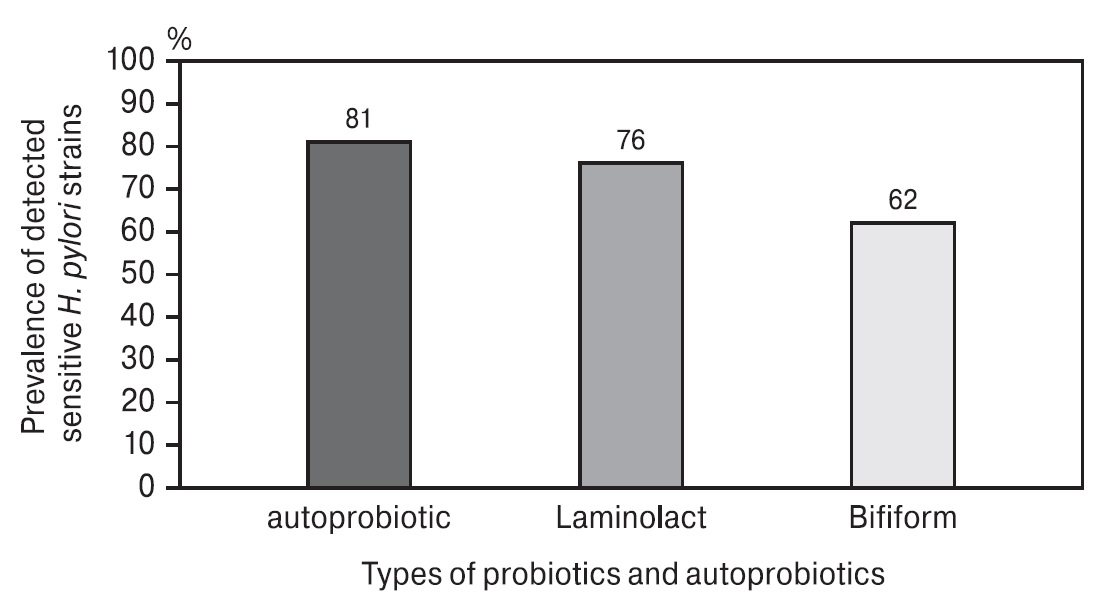 Figure 2. Prevalence of detected H. pylori strains sensitive to probiotics and autoprobiotics