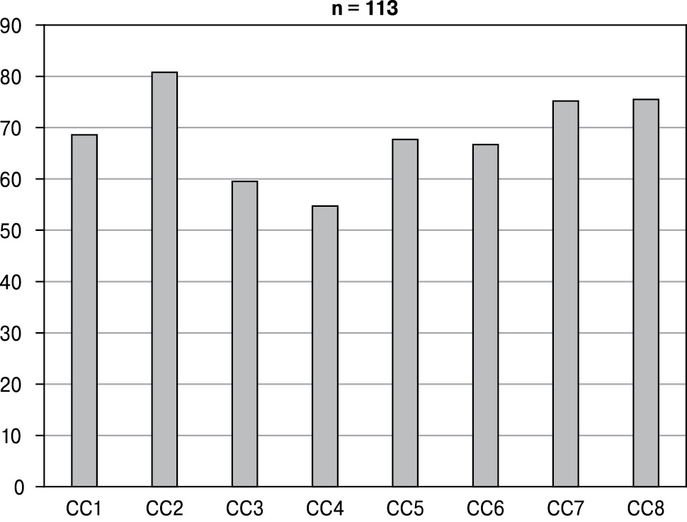 Средняя оценка для всех стационаров Армении по ключевому компоненту 8 составляет 75,5 баллов (рис. 2).