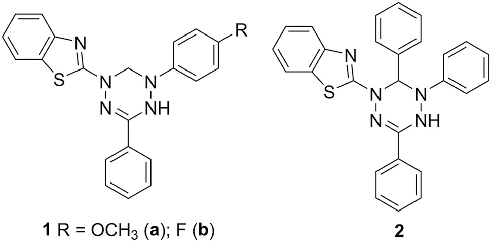 Figure 1. Structures of 2-(1-aryl-3-phenyl-5,6-dihydro-4H-1,2,4,5-tetrazin-1-yl)-1,3-benzothiazoles used in the study