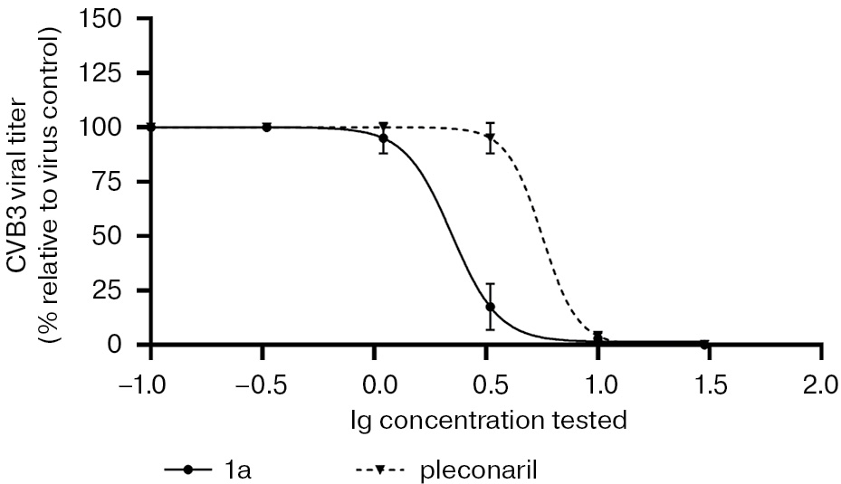 Figure 5. Virus-inhibiting properties of 1a against Coxsackievirus B3 (Nancy) in viral yield reduction assay