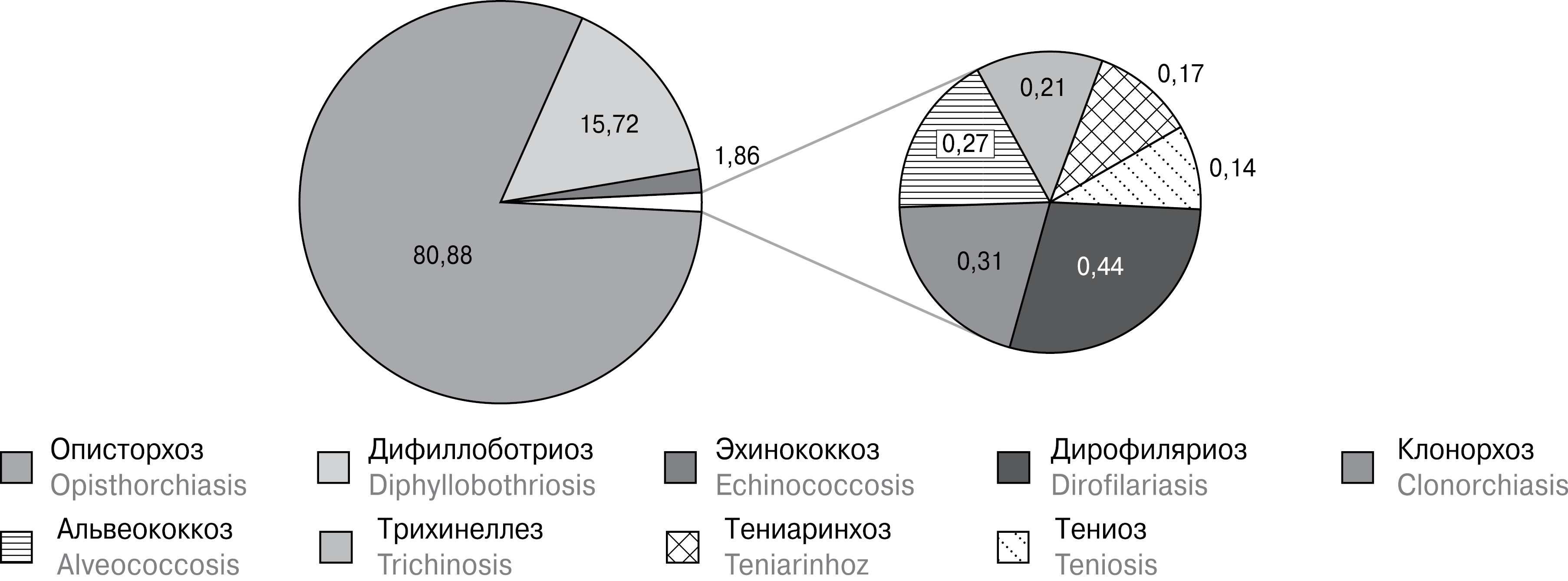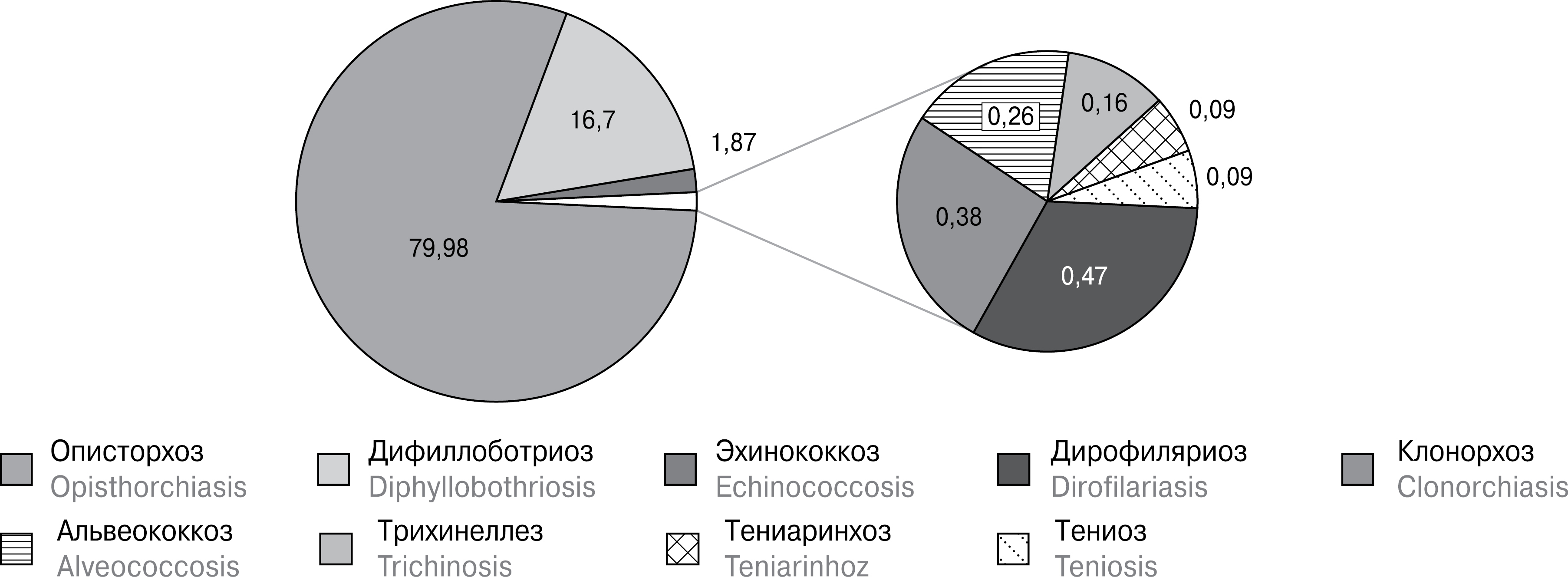 Описторхоз остается актуальной социально-значимой проблемой практического здравоохранения, занимая 4–5 место среди всех паразитарных инвазий, и наносит немалый ущерб здоровью населения [15].